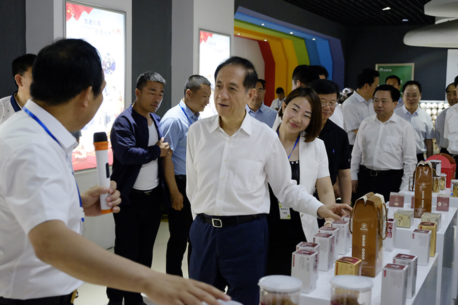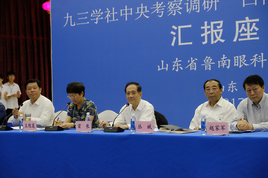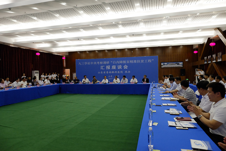 5月24日上午,韩启德主席参加在鲁南眼科医院召开的白内障防治精准扶贫座谈会。