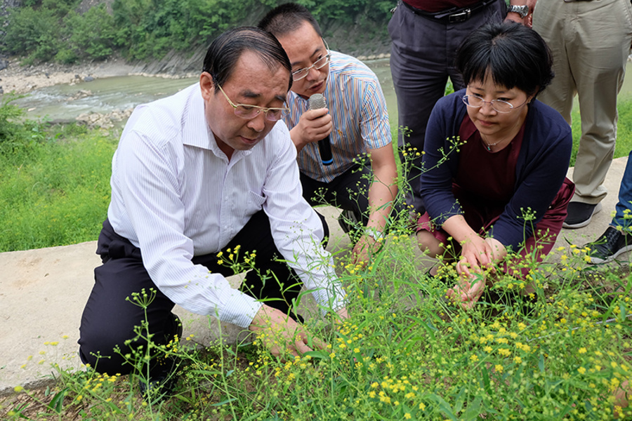 6月3日,丛斌在九三学社定点帮扶国华镇柴胡基地查看柴胡生长情况。