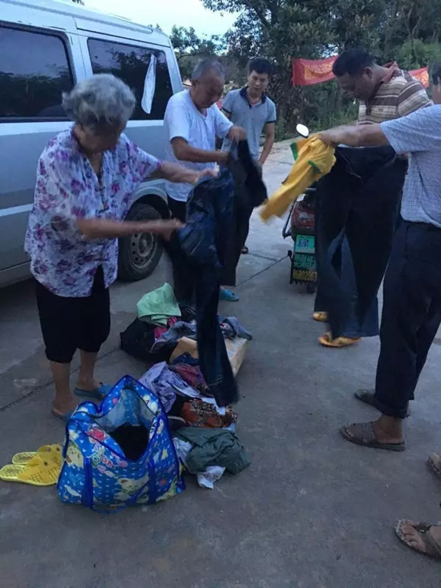 社员张冕为受灾严重的乌山街道白沙垸募捐衣物500余件,送去大米、食用油、药物及各类生活用品。