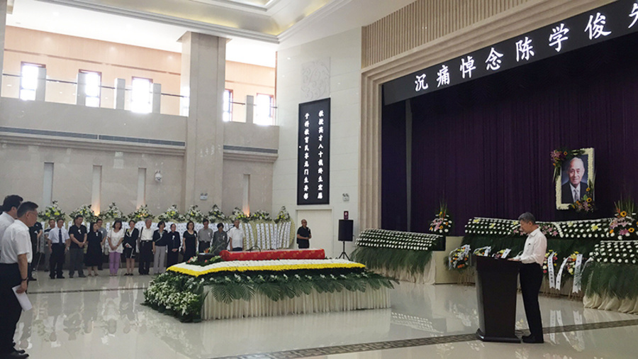7月8日上午,西安殡仪馆咸宁厅庄严肃穆,我国著名的能源动力科学家,全国政协原常委,九三学社中央原副主席、名誉副主席,陕西省人大常委会原副主任、九三学社陕西省委原主委,中国科学院资深院士,发展中国家科学院院士陈学俊同志遗体告别仪式在这里隆重举行。陈学俊同志因病医治无效,于2017年7月4日2时26分在西安逝世,享年99岁。