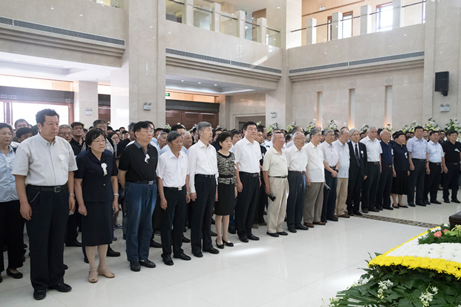 韩启德、邵鸿、谢小军、张桃林、赖明、马大龙、丛斌、赵雯、卢柯、武维华、印红、王志珍、陈抗甫、安振东、杨槱、闵乃本、谢丽娟、冯培恩、贺铿、唐有祺、刘荣汉等九三学社中央现任和离任领导同志,周卫健等九三学社省级组织主要负责同志敬献花圈。