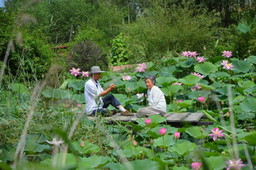 村民来赏荷。(杨公立供图)