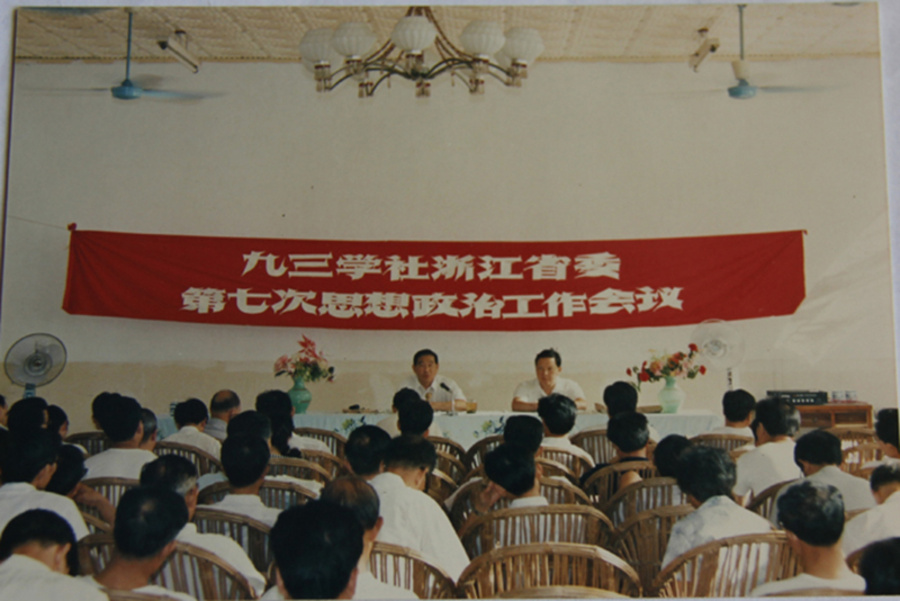 1989年召开九三学社浙江省委第六次思想政治工作会议。面对“政治风波”平息不久的形势,会议学习中共十三届四中全会文件和邓小平同志讲话精神,使与会者进一步认清形势,统一思想,坚定了信心。时任省委统战部副部长李青高度评价此次会议,认为会议本身就是一个维护安定团结的实际行动。