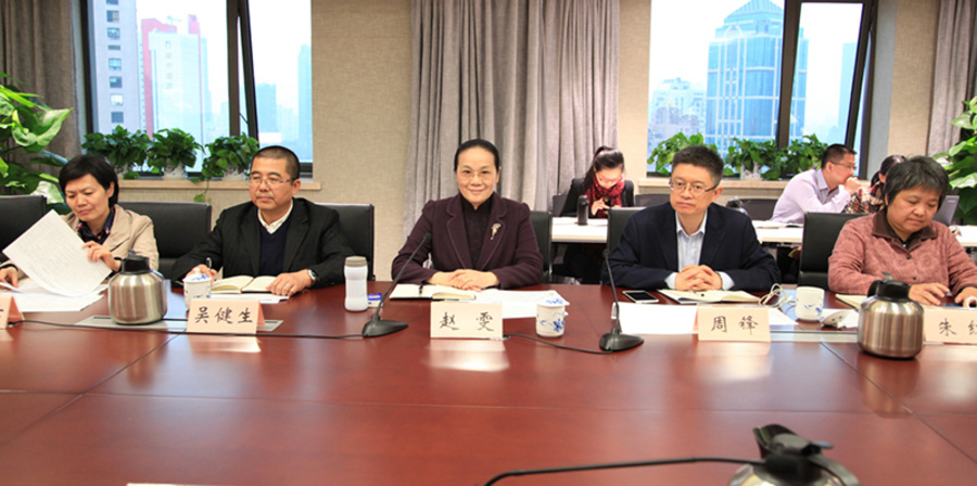 11月14日下午,九三学社中央副主席、上海市委主委赵雯在民主党派大厦,与九三学社上海市船舶、化工、建工建材、梅山、冶金、仪电、对外经贸大学支社社员代表共同学习中共十九大精神。