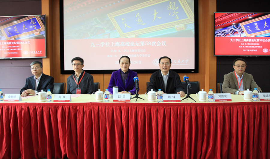 会议由九三学社上海市委副主委、上海交通大学委员会主委刘成良主持。九三学社上海市委副主委周锋,秘书长朱红,教育专门委员会主任、华师大委员会主委李道季,中共上海交通大学党委统战部部长张卫刚,九三学社上海高校论坛各成员单位统战部门领导、社员代表百余人参加会议。(张瑾)