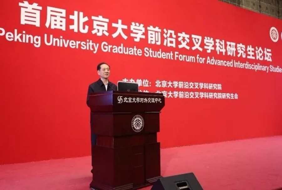 2017年4月9日,北京大学前沿交叉学科研究院院长韩启德在首届北京大学前沿交叉学科研究生论坛作主旨报告