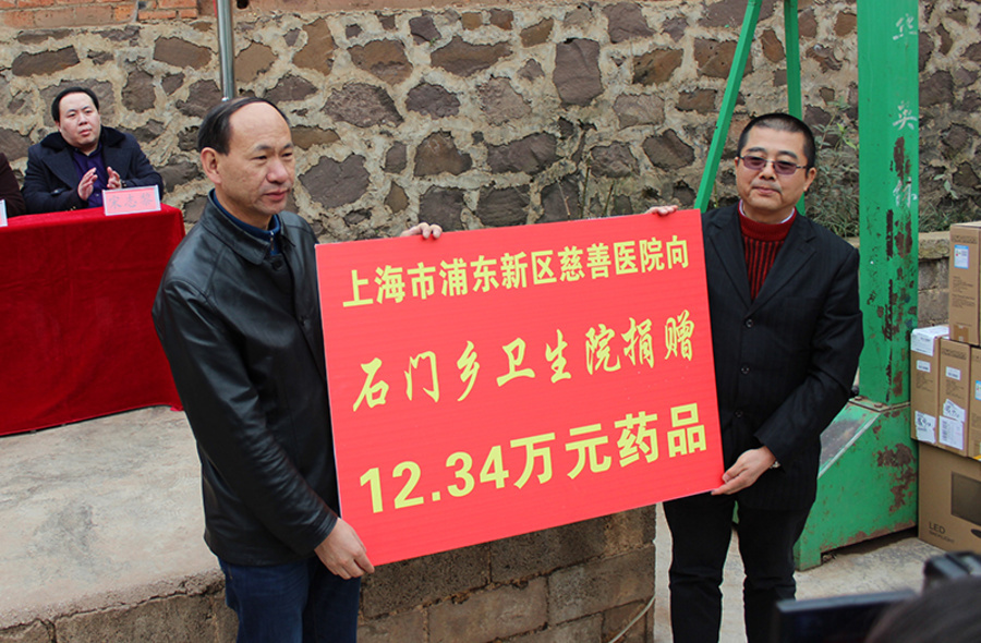 21日,赵雯一行经过近3个小时的山路颠簸,来到了飞蛾小学,向学校捐赠了2万元修建水窖,给学生们捐赠了价值6.44万元的电脑、书包、文具、字典等学习用品,并向石门乡卫生院捐赠价值12.34万元的药品。
