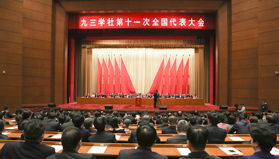 12月6日下午,九三学社第十一次全国代表大会在京西宾馆举行第四次全体会议。大会主席团常务主席谢小军主持会议。大会主席团常务主席邵鸿、张桃林、赖明、马大龙、丛斌、赵雯、卢柯、武维华、印红,全国政协原副主席、九三学社中央原副主席王志珍,九三学社中央原副主席陈抗甫、谢丽娟、冯培恩及大会主席团成员在主席台就座。