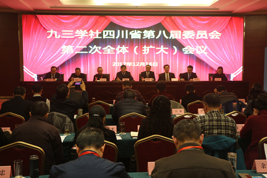 12月16日,九三学社四川省第八届委员会第二次(扩大)会议在成都召开。会议深入学习贯彻中国共产党第十九次全国代表大会精神,传达贯彻九三学社第十一次全国代表大会精神,学习贯彻中国共产党四川省第十一届二次全体会议精神,听取并审议九三学社四川省第八届常务委员会2017年工作报告并通过相关决议。会上还举办了科学报告会,并对社务工作先进集体和个人进行了表彰。九三学社中央副主席、四川省委主委黄润秋出席会议,并代表社省委第八届常务委员会做工作报告。
