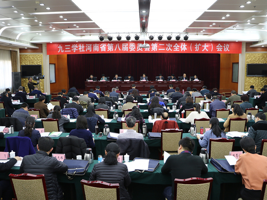 1月19日至20日,九三学社河南省第八届委员会第二次全体(扩大)会议在郑州召开。会议学习中共十九大精神、九三学社十一大精神和九三学社河南省第八次代表大会精神;审议通过八届常委会2017年工作报告和社省委监督委员会工作报告;表彰2017年度各项社务工作先进集体和先进个人。河南省政协副主席、九三学社河南省委主委张亚忠代表第八届常委会作2017年度工作报告。