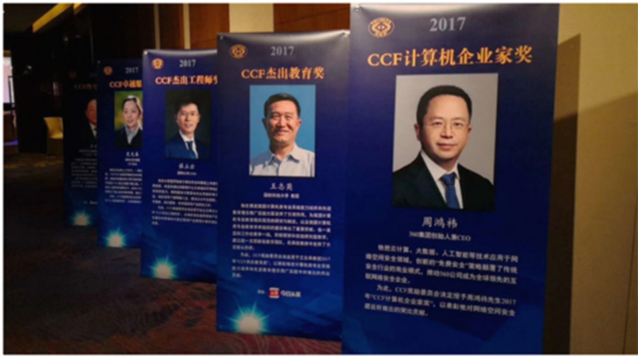 为此, 中国计算机学会奖励委员会决定授予周鸿祎先生2017年“CCF计算机企业家奖”,以表彰他对网络空间安全建设所做出的突出贡献。“
