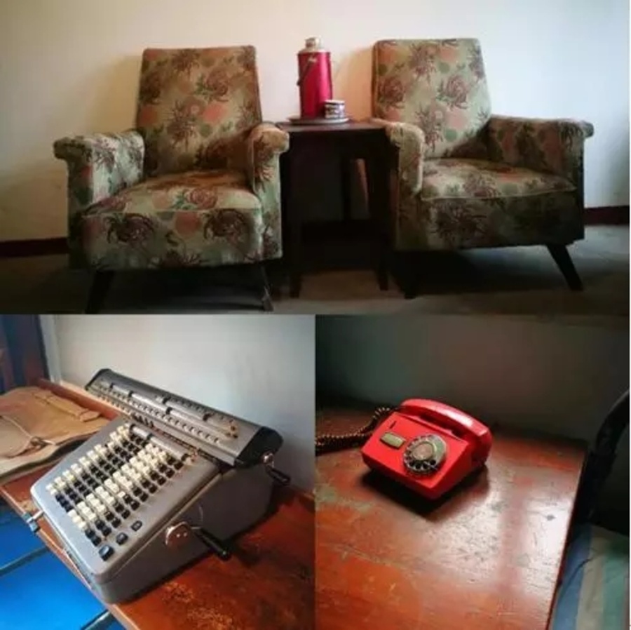 这间屋子曾经是九三学社社员、两弹元勋邓稼先的办公室,从摆设上,我实在说不出什么东西来:这是一对沙发,这是一部电话,这是一台手摇计算机。