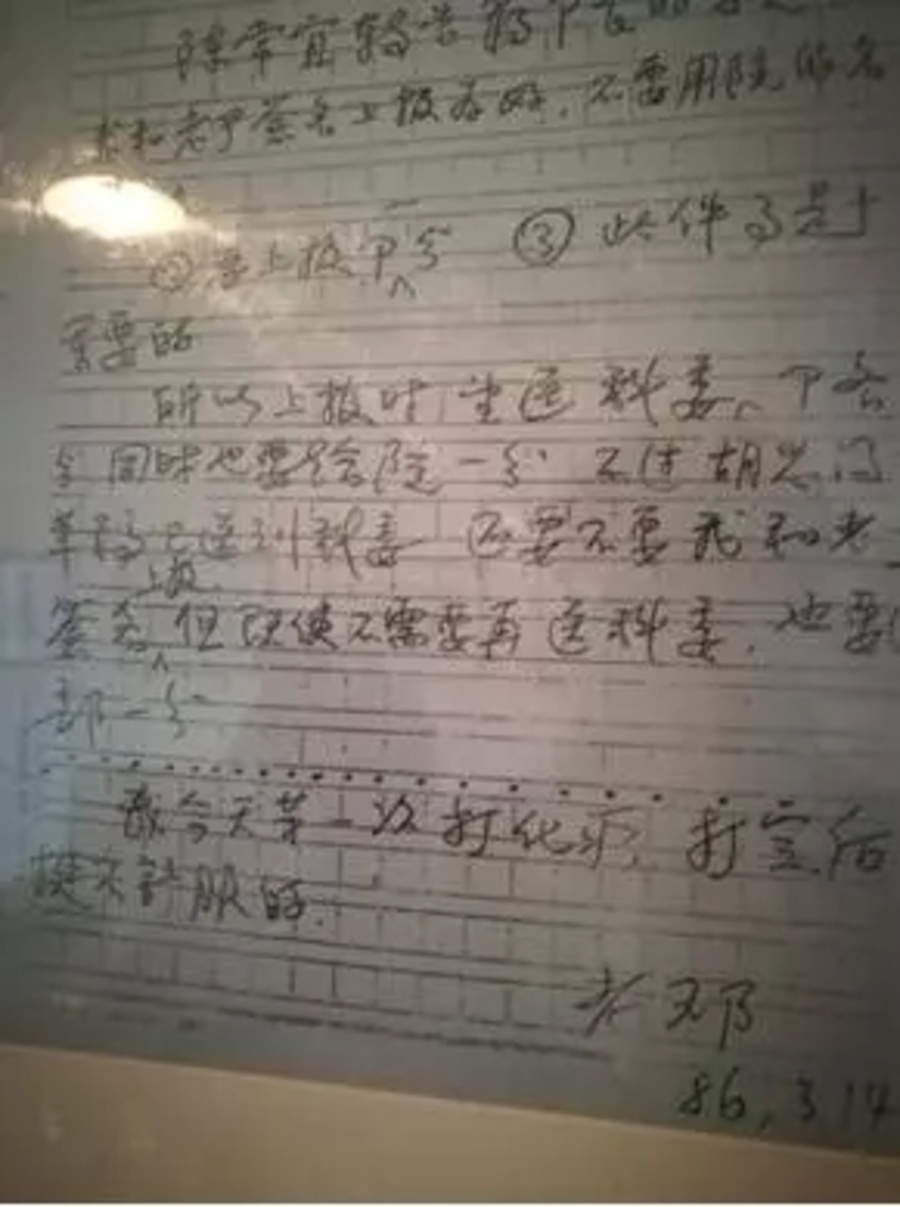 这是另一张邓稼先的手稿,里面对病情也只说了一句话,“今天我打了化疗,打完挺不舒服的”。可能这是我见到的,这位科学大家第一次,向别人表达自己的病痛。而他其他时间,说的依旧只有工作。