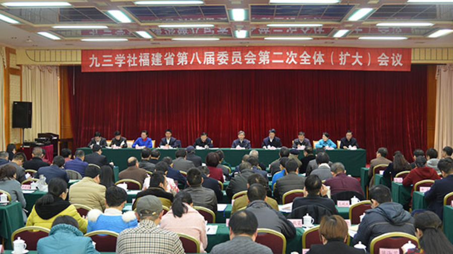 1月13日,九三学社福建省八届二次全体(扩大)会议在福州梅峰宾馆召开。会议传达学习中共十九大和九三学社十一大精神;审议通过《九三学社福建省第八届常务委员会2017年工作报告》;表彰学习实践活动和2017年度全省各项社务工作先进集体与个人;审议通过相关决议。九三学社福建省委主委洪捷序代表九三学社福建省第八届常务委员会作工作报告。中共福建省委统战部常务副部长臧杰斌出席并讲话。对口联系单位省科技厅副厅长游建胜、省住建厅副厅长蒋金明应邀出席开幕式。