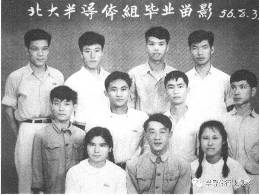 1955年,北京大学第一届半导体方向毕业生和黄昆合影