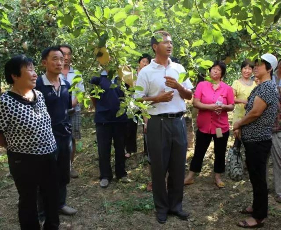58岁的老农宋改河十几年跟着陈老师学种果树,如今也成了“老把式”。靠10来亩的果园,每年十几万元收入,过上了滋润的小康日子,如今承包几百亩地的果农大户已有30来户。