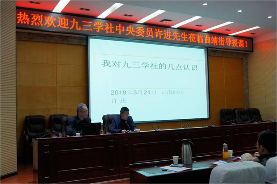 3月21日,九三学社中央委员、九三学社思想建设研究中心副主任许进来到云南省曲靖市,为当地九三学社社员讲社史。