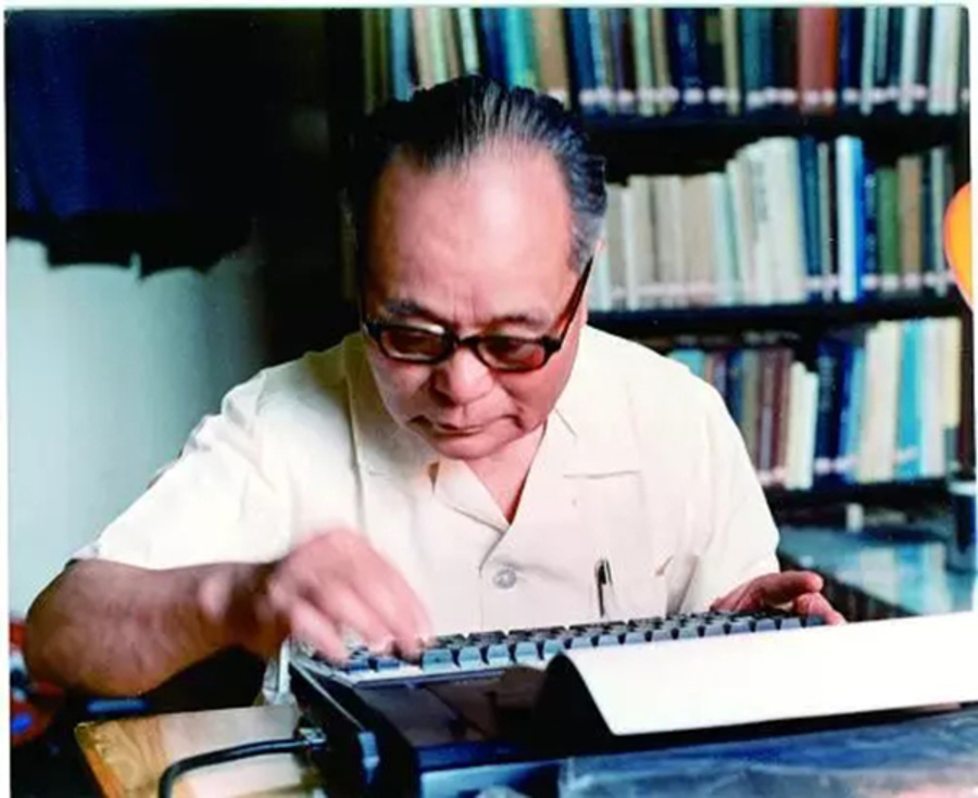 程开甲在打字机上撰写论文。