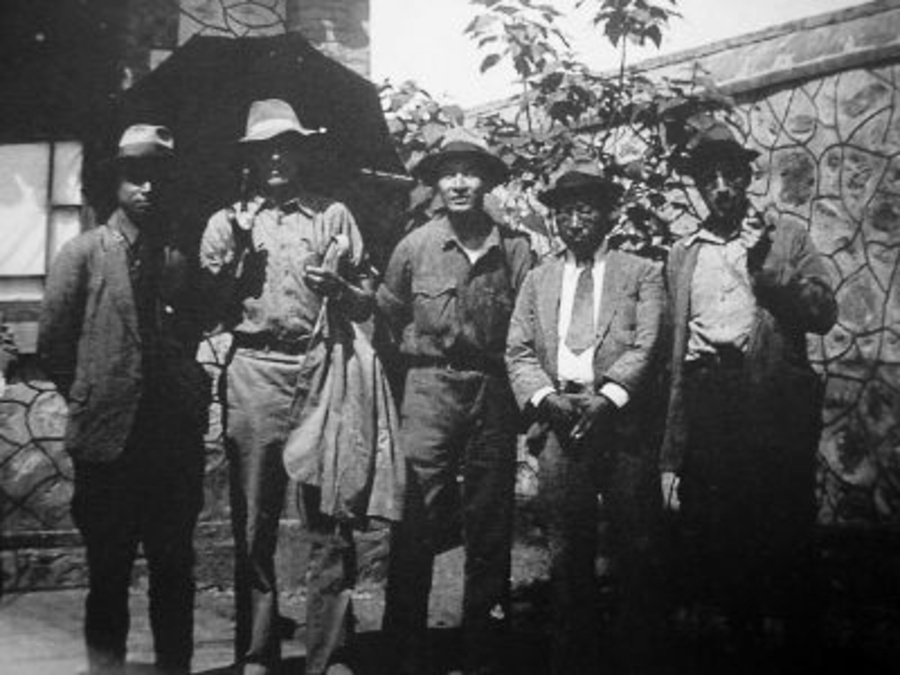 ▲1934年5月,裴文中、李四光等考古学家在周口店办事处院内。