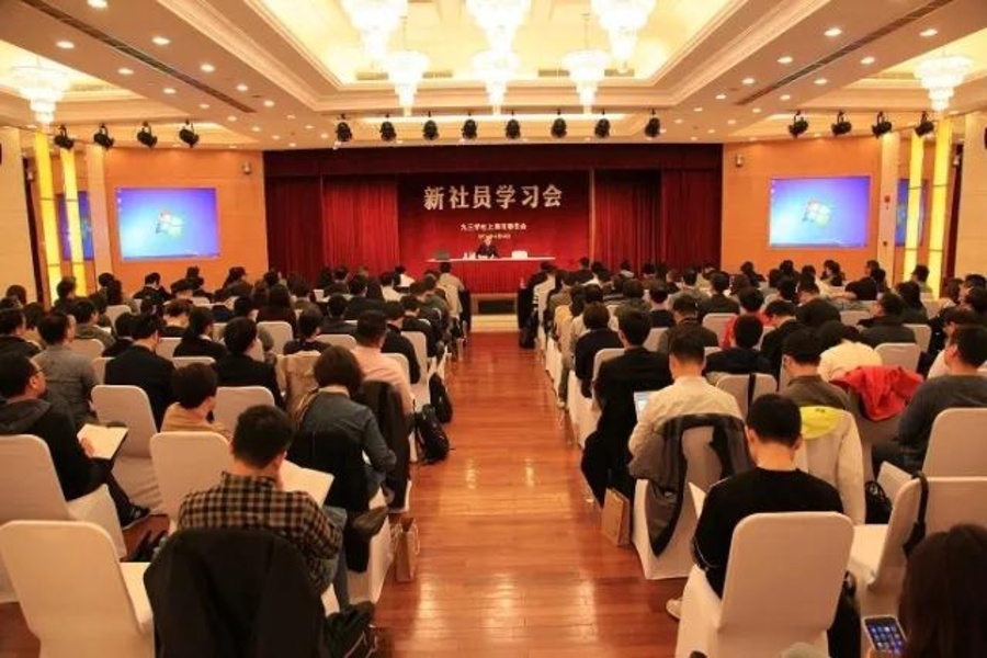 九三学社上海市委近200位新社员参会。社上海市委组织部部长詹咏等出席会议。