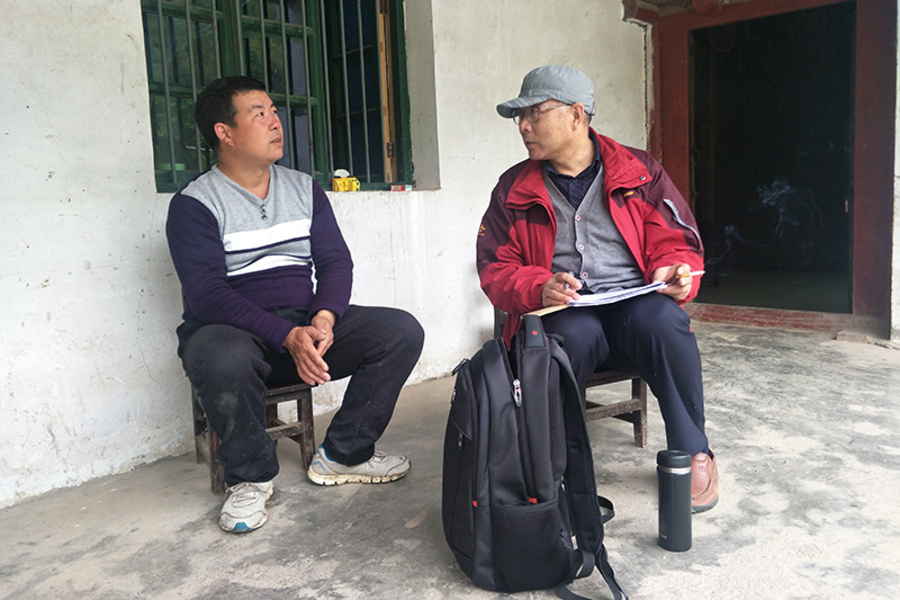 4月9日,调研组专家、中国农业大学教授高振江走访贫困户张顺军。