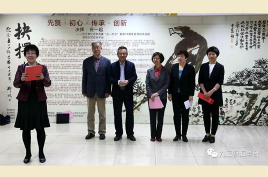 近日,九三学社北京市委纪念“五一口号”发布70周年系列纪念活动启动仪式首站在丰台中国戏曲学院拉开序幕。活动过程中,全国政协副主席、九三学社中央邵鸿副主席亲自题写“抉择在一起”纪念五一口号发布70周年巨画。北京市政协副秘书长、九三学社北京市委专职副主委兼秘书长李丽萍,中共中国戏曲学院党委副书记徐超、中共中国戏曲学院党委统战部干事杨冰参加了会议。