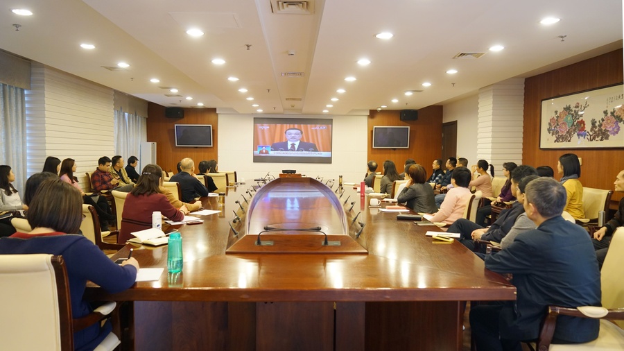 3月5日上午9时,十三届全国人大二次会议在人民大会堂隆重开幕。九三学社中央机关干部在机关601会议室集体收看大会直播盛况,聆听李克强总理代表国务院向大会所作的政府工作报告,学习大会精神。