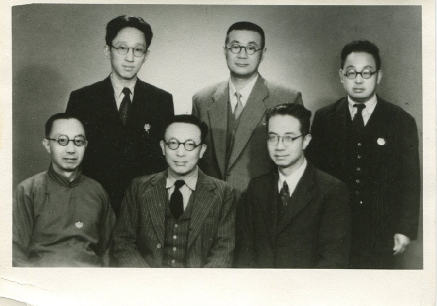 参加中国人民政治协商会议第一届全体会议的九三学社代表。左起:黎锦熙、许德珩、袁翰青。后排左起:叶丁易、吴藻溪、薛愚(叶丁易为候补代表)