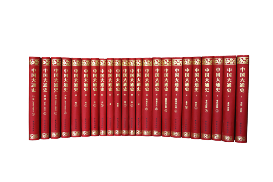 《中国大通史》是一套详细、系统地反映史学界改革开放40年来研究成果的中国通史著作。全书以中国历史时序排列,分为史前、夏商西周、春秋战国、秦汉、魏晋南北朝、隋唐五代、辽、宋、西夏、金、元、明、清(1644-1840)、清(1840-1911)、中华民国共 15 卷(25 册),1700 万字。全书各均以综述与治乱兴衰、经济、国家控制、社会结构、精神文化、社会生活等6编构成,以专题形式叙史。
