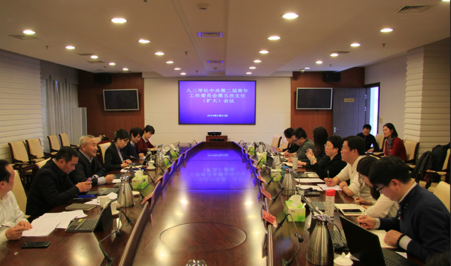 2月22日至23日,九三学社中央第二届青年工作委员会第五次主任(扩大)会议在京召开。会议总结了社中央青工委2018年工作,研究了2019年工作安排并部署了重点活动。社中央常务副主席邵鸿出席会议并讲话。社中央组织部部长、青工委常务副主任杨玲主持会议。