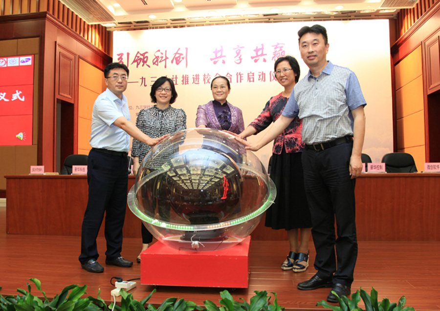 7月5日下午,引领科创、共享共赢——九三学社推进校企合作启动仪式在紫竹高新技术产业开发区举行。九三学社中央副主席、上海市政协副主席、九三学社上海市委主委赵雯出席并讲话,并与中共闵行区委常委、统战部部长李红珍,上海交通大学副教务长吴静怡,紫竹高新区副总经理陈衡,九三学社上海市委科技专委会副主任贾锋共同按下了启动仪式按钮。