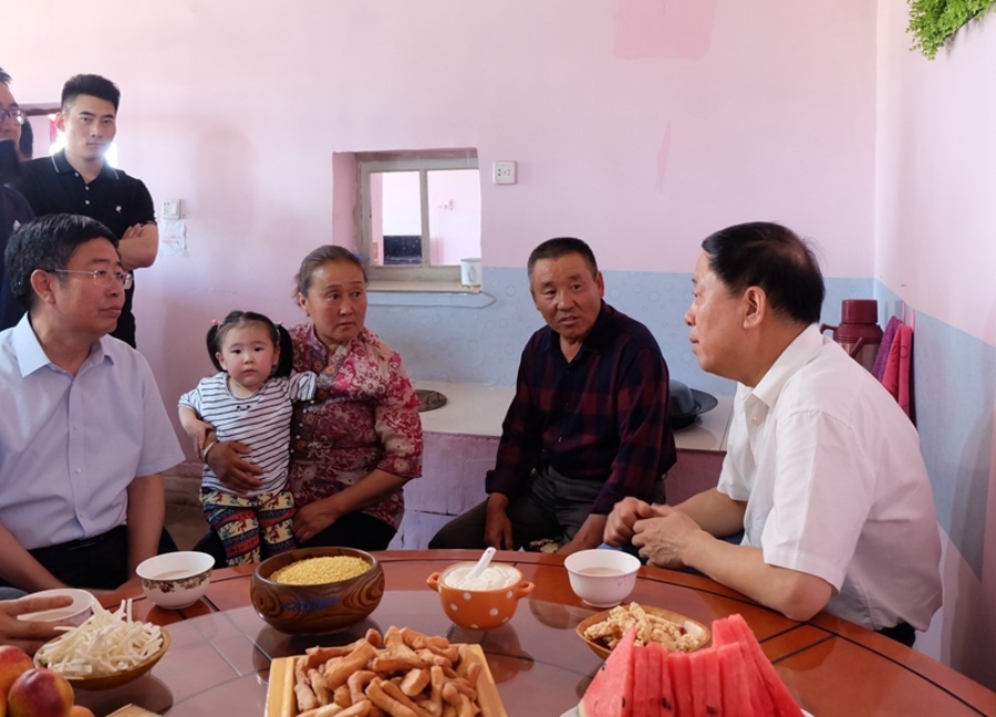 6月30日,调研组看望王府苏木白音嘎查牧民哈斯。