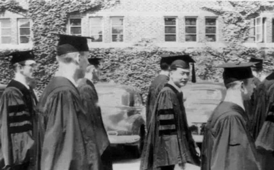 1949年,邓稼先与杨振宁、杨振平在美国芝加哥拍摄了这张合影,邓稼先则将天分和勤奋发挥到极致,三年的博士课程,他仅仅用了1年11个月便修完了所有学分。