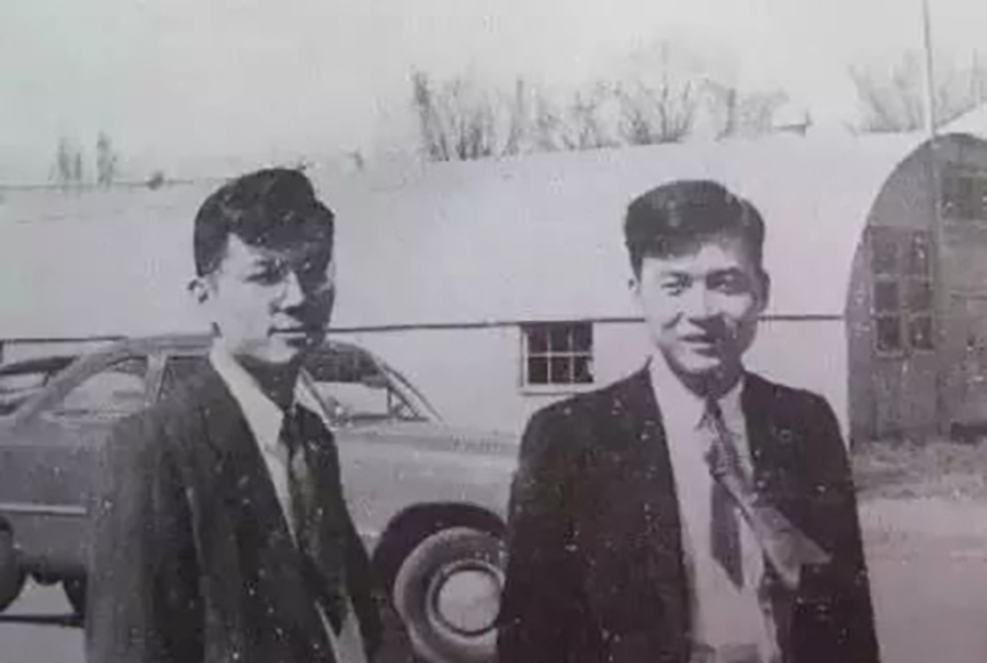 照片右边是我们熟悉的杨振宁先生,左边是比杨振宁还年轻两岁、看起来却衰老很多的邓稼先。