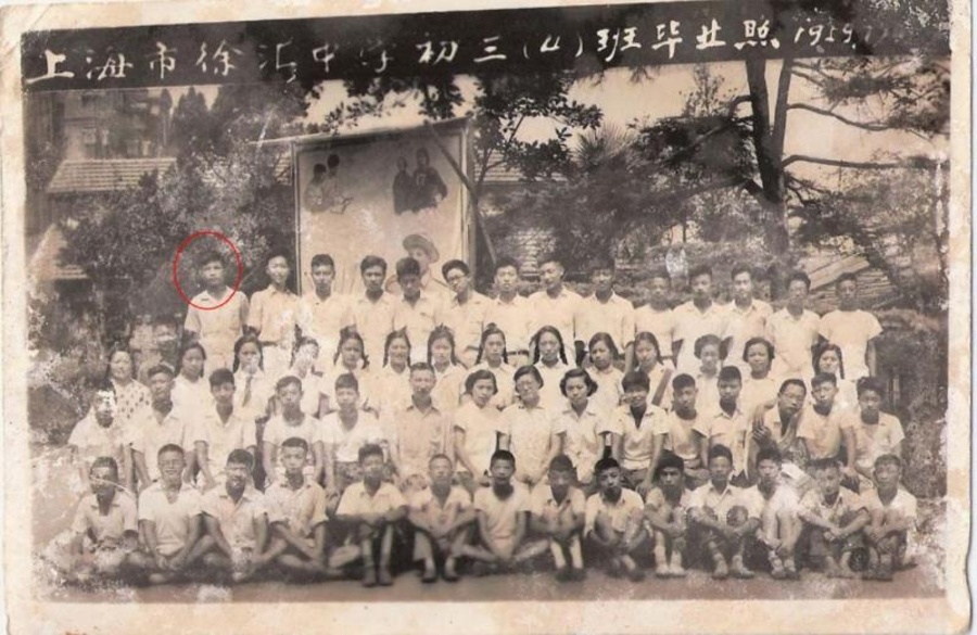 褚君浩在徐汇中学的初中毕业照(四排左一)