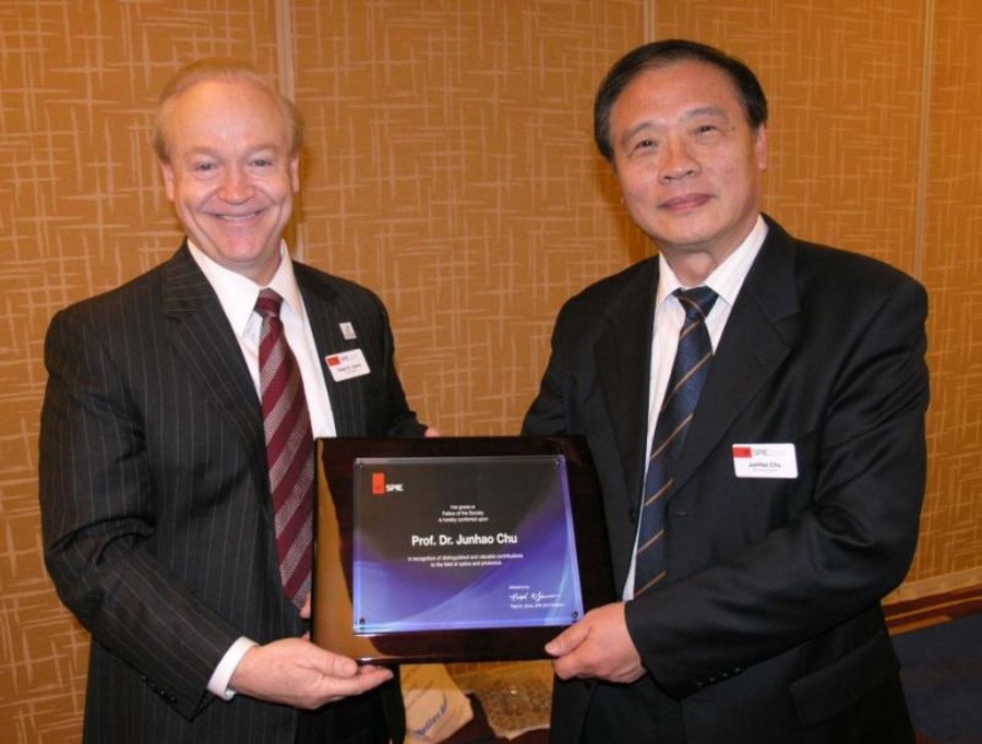 褚君浩,1945年生,红外物理学家,中国科学院院士。1981年和1984年先后获中国科学院上海技术物理研究所硕士、博士学位。1985年加入九三学社。