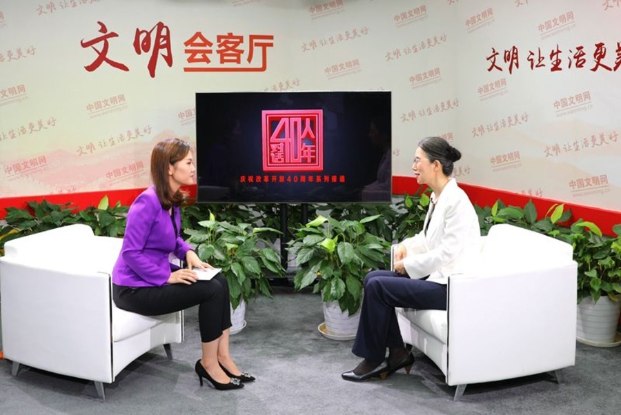 近日,中国文明网推出大型系列访谈节目《40人对话40年》,庆祝改革开放40周年。8月14日,栏目专访了九三学社中央常委、全国三八红旗手标兵、中国科学院大学教授杨佳 段琳玉 摄