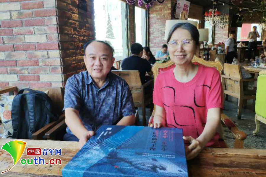 广东大音音像出版社社长闻宗禹与杨佳共同展示《盲人中、小学生无障碍阅读工程》项目成果。中国青年网通讯员 孙沛泽 摄