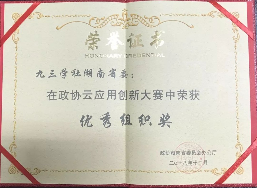 2017年8月,省政协在九三学社省委和长沙、株洲等市政协进行政协云拓展履职试点,九三学社成为最早与政协云密切对接的民主党派。