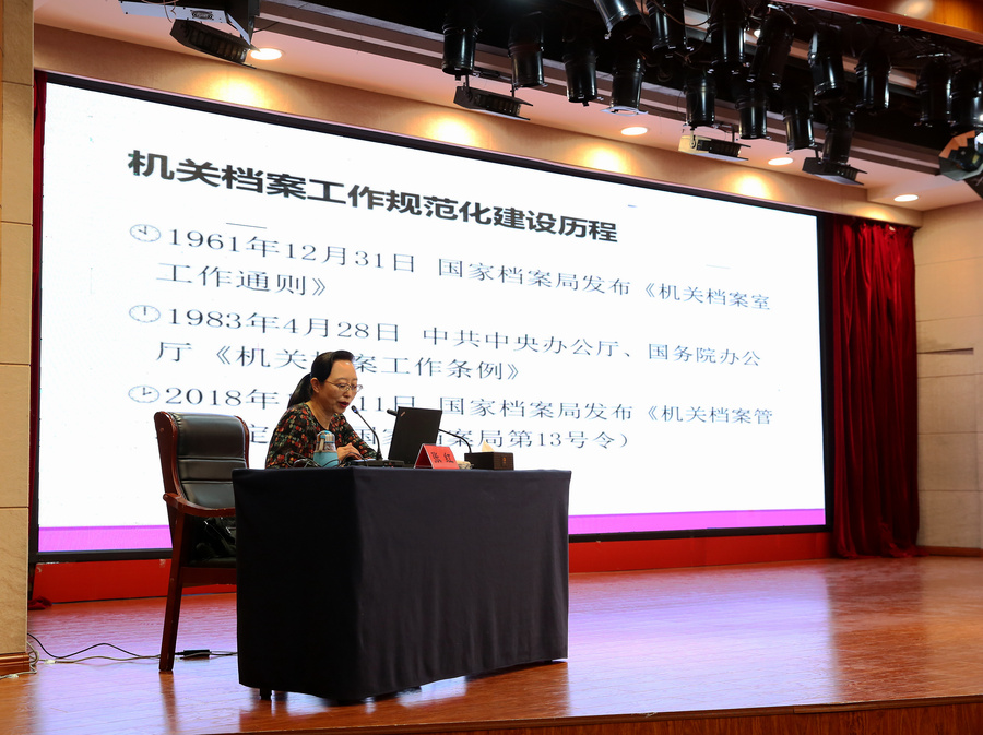 培训班上,邀请国家档案局档案馆(室)业务指导司调研员张红同志围绕《机关档案管理规定》,结合党派机关实际,就档案管理工作进行了辅导解读,讲座既有宏观分析、又有具体实务,对于推进全社各级机关档案工作规范化建设具有很强的指导作用。社中央办公厅有关同志介绍了社中央信息化工作整体规划及信息化建设应用工作概况,并就有关信息化系统的具体运用现场演示操作,具有很强的针对性和实效性。办公厅分管负责同志结合多年公文处理工作经验,从公文基本概念、定位关系与行文规则入手,重点讲授了公文制发流程、收文规范处理等内容,理论性和操作性都很强;围绕2019年机关正规化建设交叉检查工作,着重讲解了社中央办公厅开展交叉检查工作的初衷意义、组织实施办法以及检查结果评价,并就有关指标现场答疑释惑,使参训人员统一了思想认识,明确了目标任务。