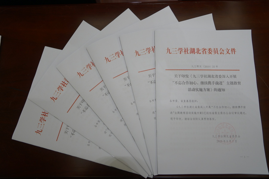 九三学社湖北省委合本省工作实际,及时制定印发开展“不忘合作初心,继续携手前进”主题教育活动实施方案。聚焦抓紧抓实抓细是九三学社湖北省委主题教育活动实施方案的重要特色。实施方案中对学习计划进行分周落实,21周都有分解学习任务,学习习近平新时代中国特色社会主义思想纲要,九三学社简史等等,要求各市委结合实际,购买学习资料,社省委对开展活动给予经费支持。九三学社湖北省委主委秦顺全指出:“要提高政治站位,以中国共产党为师,围绕‘一芯两带三区’战略,助推湖北高质量发展。”