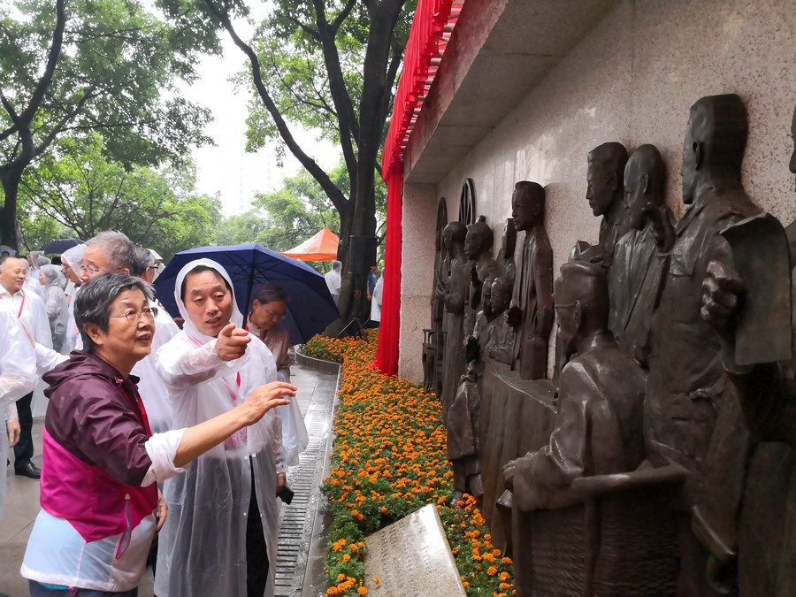 冒着秋雨、穿着雨衣,九三学社中央新老领导班子成员、各省级组织主委、九三学社创建时理监事后裔代表、重庆市有关方面同志200余人,一起在重庆市渝中区人民公园见证这激动人心的时刻。