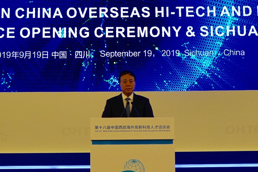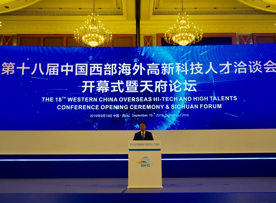 9月19日,第十八届中国西部海外高新科技人才洽谈会暨天府论坛在四川成都开幕。九三学社中央主席、中国科学院院士武维华出席开幕式并致辞。