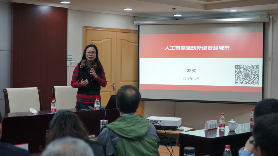 社中央科技专门委员会青年小组成员赵英和李小亮,分别就《人工智能驱动新型智慧城市》和《古代艺术与科学结合的启示》进行主题发言。