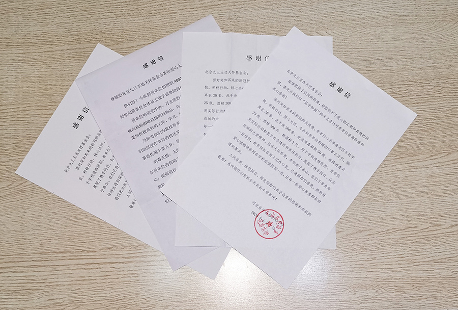 近日,来自河北平山县多所学校的感谢信陆续寄到九三王选关怀基金会副秘书长赵鑫手中。信中写道:面对突如其来的新冠肺炎疫情,九三王选关怀基金会心系革命老区乡村学校,积极行动,倾心关怀,积极筹措大量防疫物资用于学校疫情防控,用实际行动彰显了九三王选关怀基金会的社会情怀和责任担当,展现了携手同行、众志成城的大爱精神。