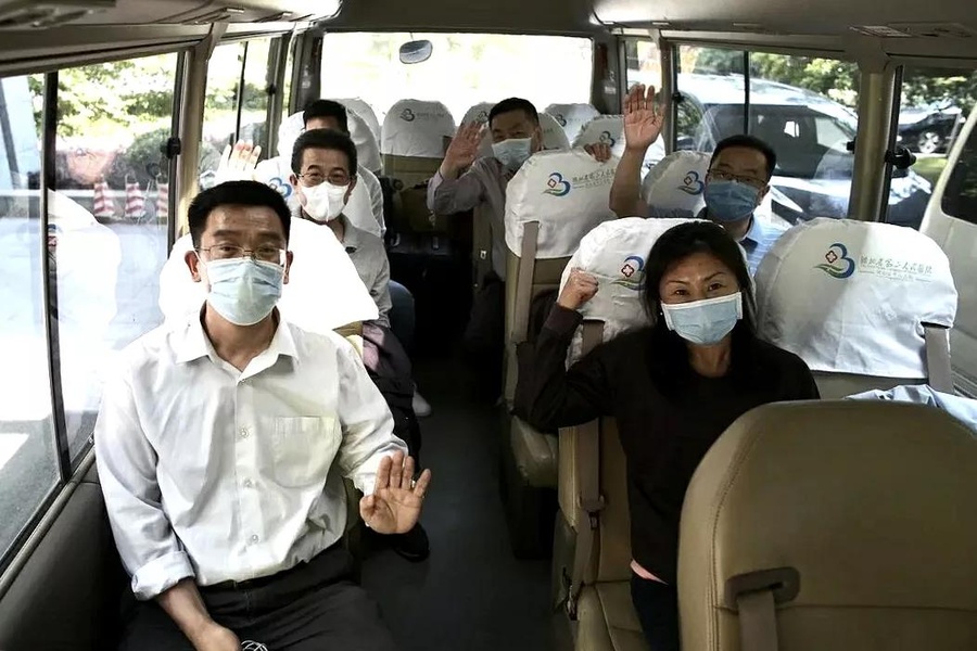 国家卫健委专家组的专家们一同前往武汉天河机场