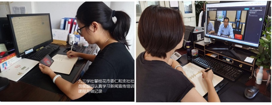 7月28日,各地新闻宣传骨干通过视频会议系统和“社员之家”APP收看培训班开幕式并参加课程学习。