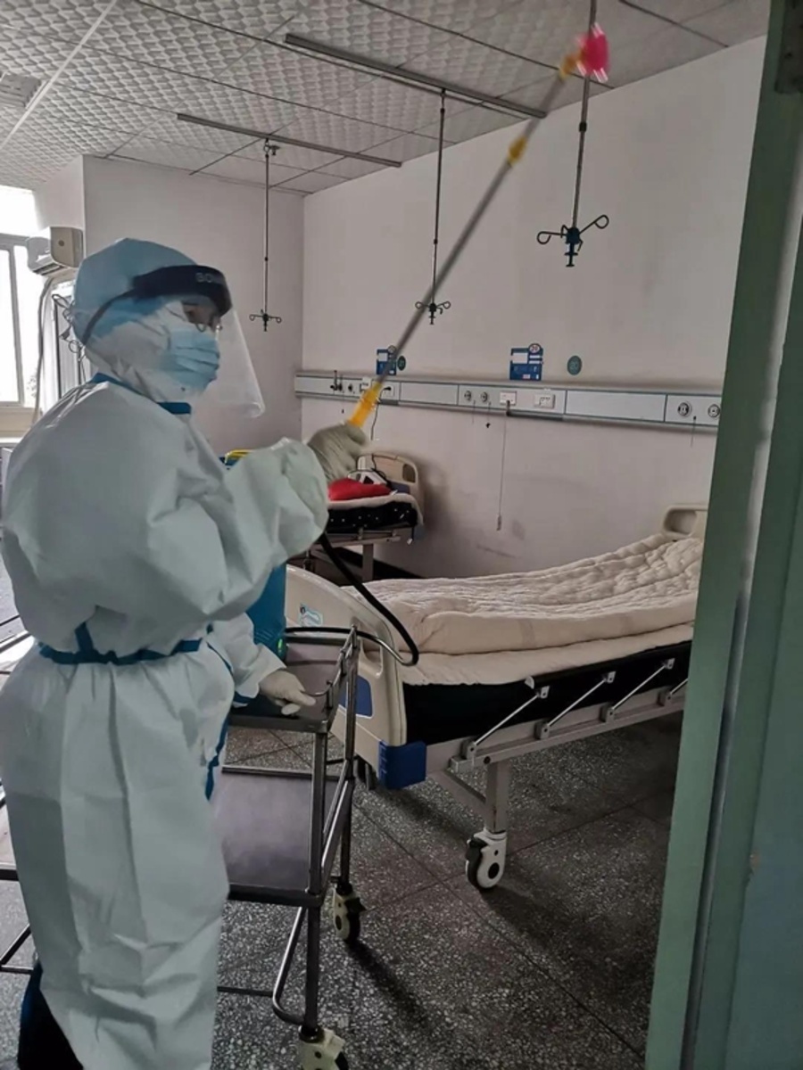 督查完三个病区,有些不尽如意需整改的,也有让人眼前一亮的。疫情当前,病区的环境清洁全是护士在做。他们穿着厚厚防护服,不仅要做治疗操作,还要负责病人生活起居,能想象工作量有多大,突然很心疼我们的护理人员。