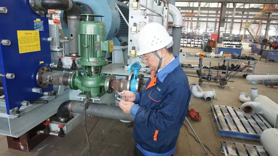 九三学社社员、安瑞科压缩机公司研发室主任、工程师朱峰利用工作间隙通过“网络课堂”参加学习。
