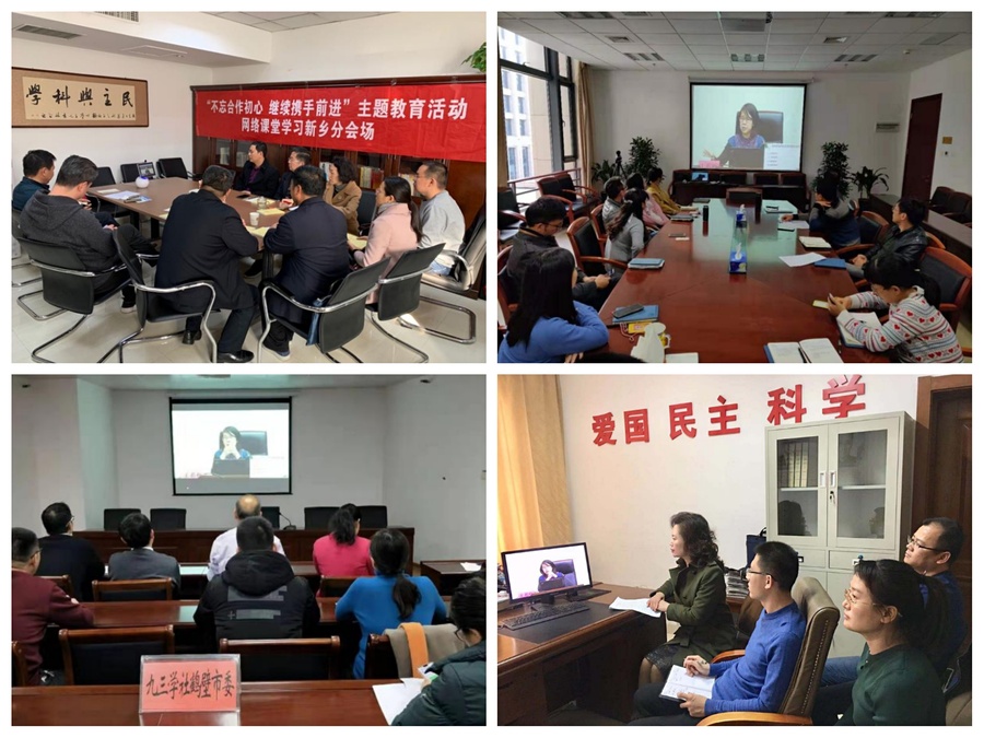全国各地的社员通过“网络课堂”留言学习心得体会。广东省九三学社社员说:“‘不忘合作初心、共同携手前进’,就要自觉地接受中国共产党的领导,牢固树立政治意识、大局意识、核心意识、看齐意识,始终在思想上、政治上、行动上同以习近平同志为核心的中共中央保持高度一致。民主党派的基本职能是参政议政、民主监督、参加中国共产党领导的政治协商,作为中国特色社会主义参政党,尤其要卓有成效地参政议政,真正做到围绕中心、服务大局,紧跟中共中央战略思想、工作大局,提出真知灼见,将优良传统薪火相传、发扬光大,为实现中华民族伟大复兴的中国梦作出新的贡献!”河南省九三学社社员说:“要继承九三学社优良传统,秉承合作初心,牢记使命担当,认真履职尽责,以实际行动践行新时代中国特色社会主义参政党使命!”安徽省蚌埠市九三学社社员说:“要以习近平新时代中国特色社会主义思想为指引,按照新时代中国特色社会主义参政党标准和要求,切实加强自身建设,进一步提升履行参政议政、民主监督、政治协商的能力,增强履行职能的使命感和责任感,与中国共产党同呼吸、共命运,共同肩负起新时代的历史使命!”